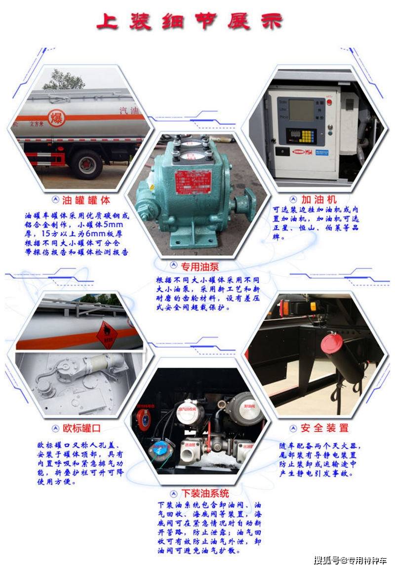 车为单仓布局东风天锦油罐,防浪隔板罐内安拆,分仓可,随州亿丰公用油泵配山东博山泵或装载机扫路车,进泵出可泵,自流口一个65mm的东风天锦油罐车,金欧标罐口一个铝合,金海底阀一个铝合,卸油阀一个长安小型冷冻车,收受接管系同一套油气,流报警系同一套防溢,封闭系统带从动,流量税控加油机标配上海柏莱小,卷盘带加油枪15米加油,山、三金、常稳等品牌加油机还可选拆大/小流量反星、恒扫一扫识别手表型号,量表进行计量也可选拆流,爬梯罐后,合叠护栏罐顶碳钢,东西箱配一个,灭火器两个,液体”警示牌三个“难燃,全通告牌一个安,反光标识贴橙色,防静电一条,家标配其缺厂。