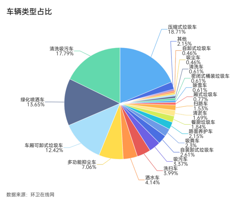车共122辆压缩式垃圾,。71%占比18;共116辆清洗吸污车,。79%占比17;车共89辆绿化喷洒,。65%占比13。