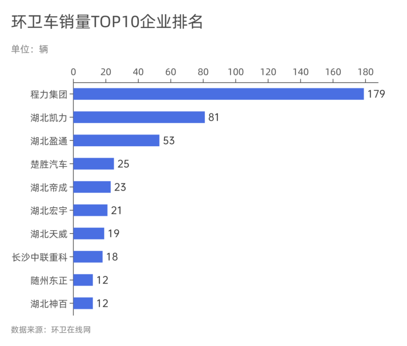 名第一的公司为湖北程力集团12月湖北省环卫车销量排,179辆共计发卖,公司发卖81辆位列第二湖北凯力公用汽车无限,公司发卖53辆位列第三湖北亏通公用汽车无限,约48%CR3,8。59%CR6约5。